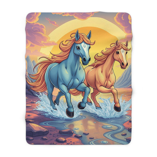 "Blue and Orange Horse Friends" Sherpa Fleece Blanket