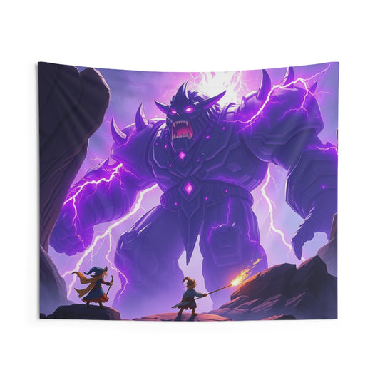 "Adventurer's vs Storm Golem" Indoor Wall Tapestries
