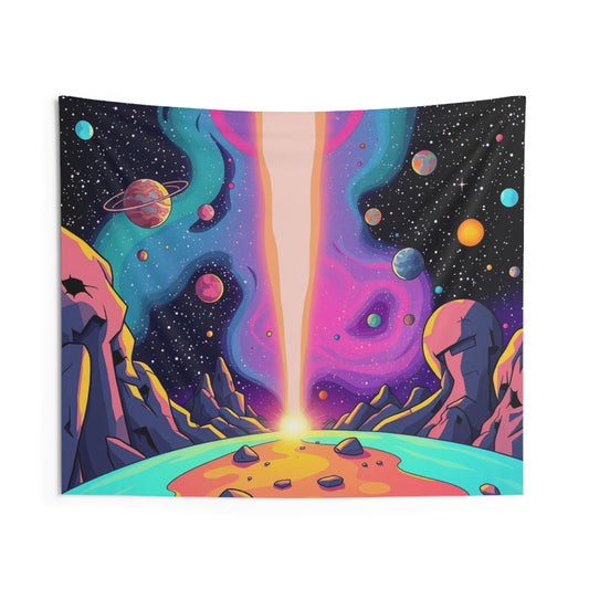"Crashing Meteor on 1990s Trippy Alien Nightscape" Indoor Wall Tapestries