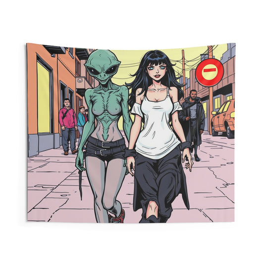 "Alien Girl and Gothic Girl Companion" Indoor Wall Tapestries